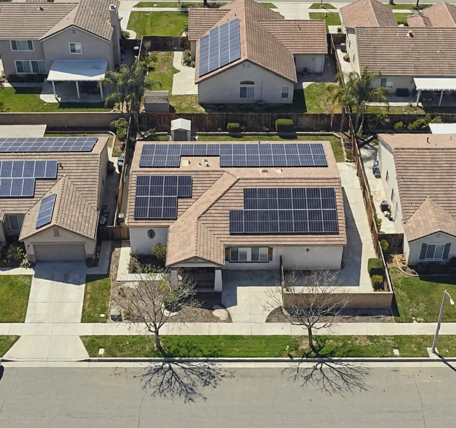 AI-generated oblique view showing your home from a drone perspective with solar panels fully installed.